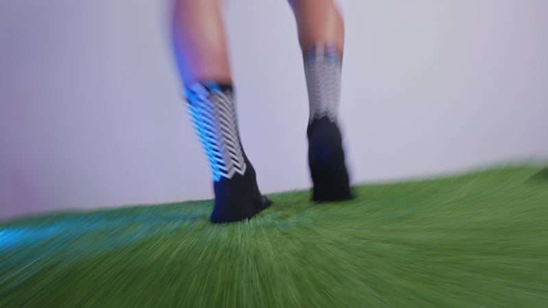 Banda de compresión en arco y tobillo que fija el calcetín, disminuye micro movimientos y ayuda a prevenir ampollas durante partidos largos.