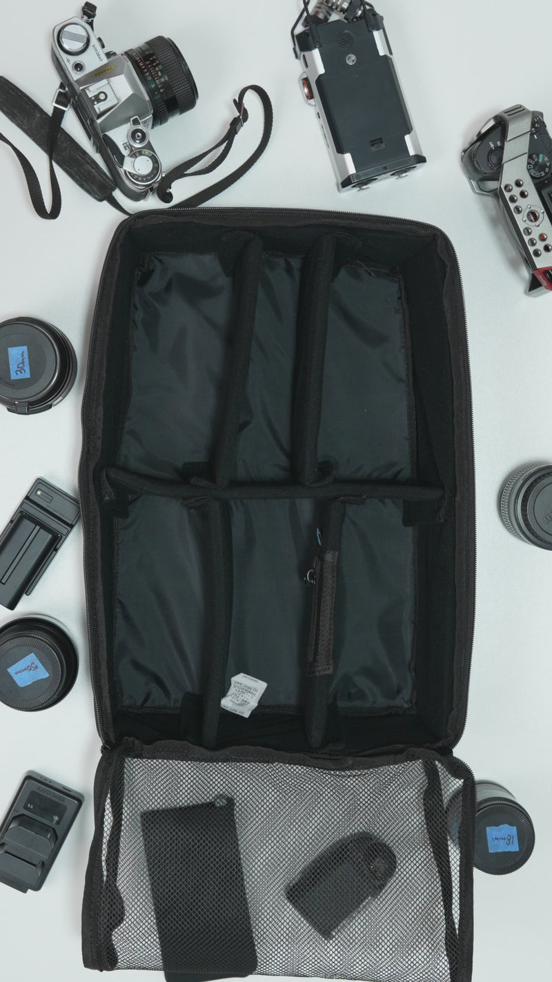 Convierte tu mochila en un pack ideal para fotografía, viajes o accesorios electrónicos en segundos.